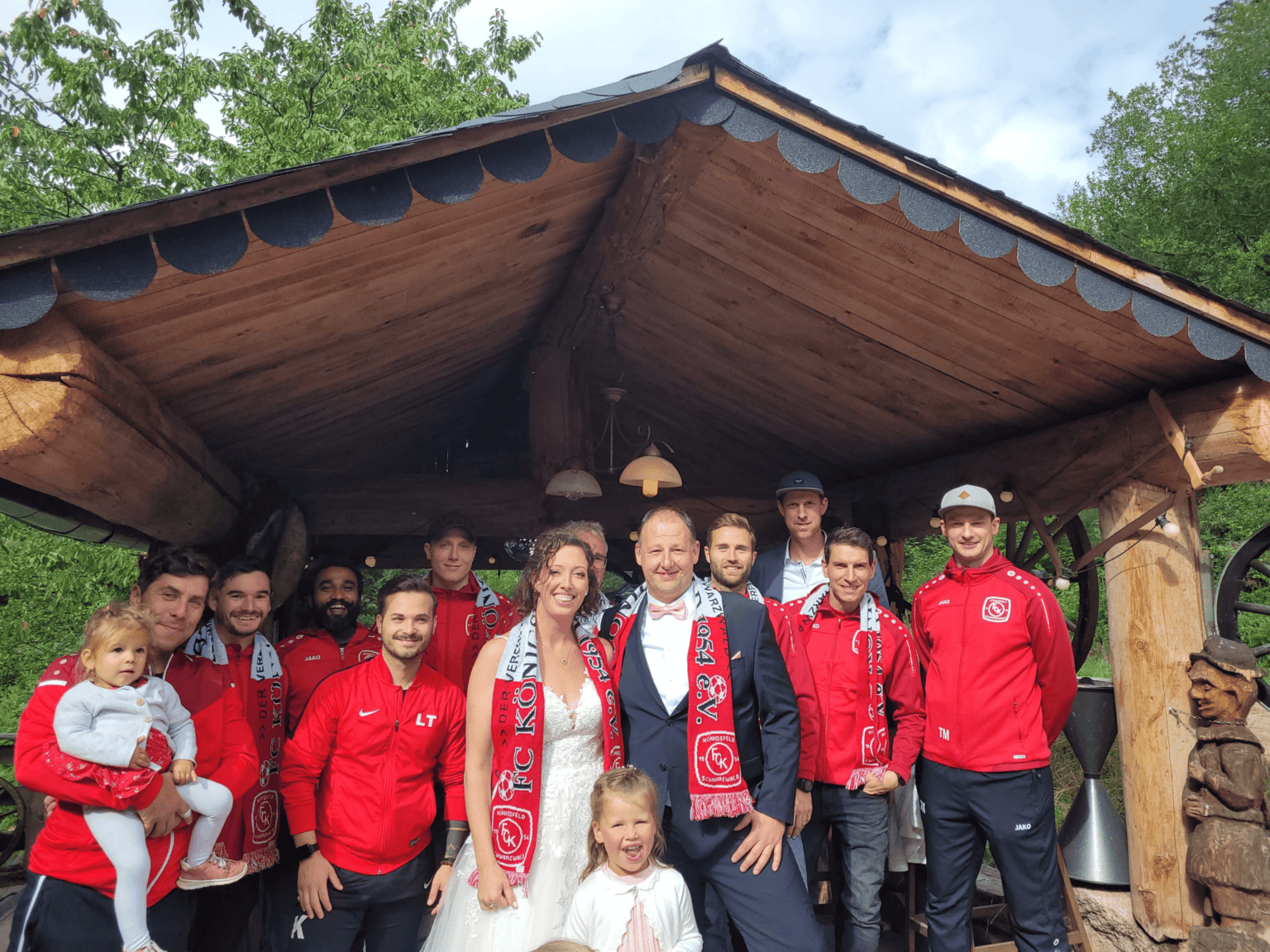 Am Samstag heiratete unser Torhüter Mike Sommer seine Katrin. Natürlich liessen wir es uns nicht nehmen und überraschten Sie mit einem FCK Spalier. Wir wünschen Euch nur das Beste für Euren gemeinsamen Lebensweg. Auf viele glückliche Jahre.